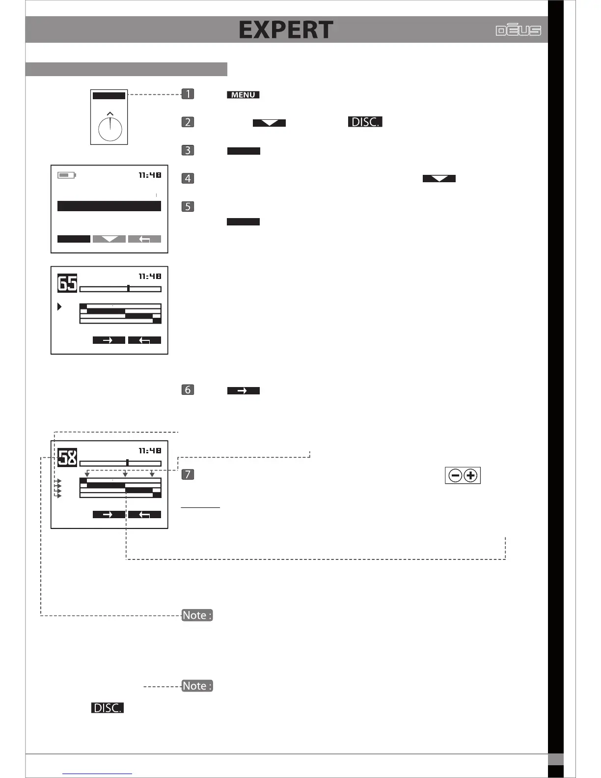 Example: If a coin type, which your device registers as 58 on the conductivity
