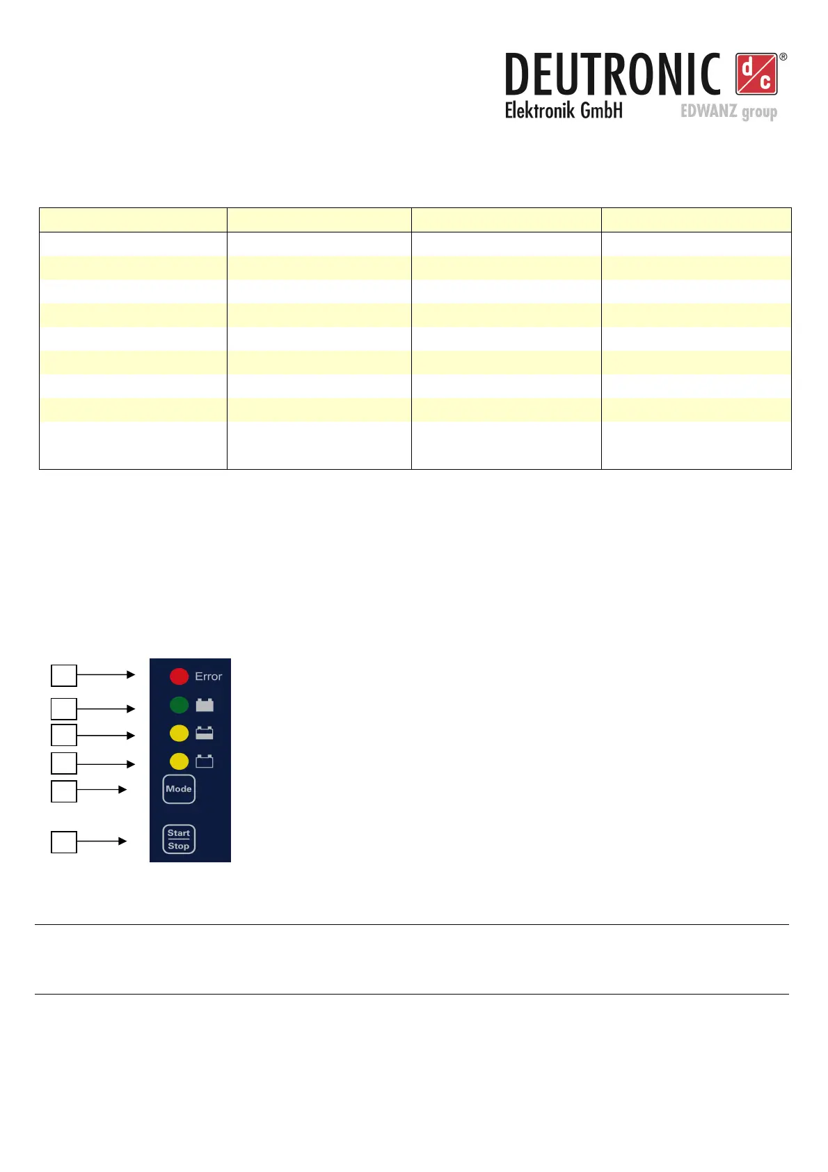 Afterwards the control elements of the DBL300 / DBL500 / DBL700 / DBLW1200 are given (incl. LEDs and push-button):