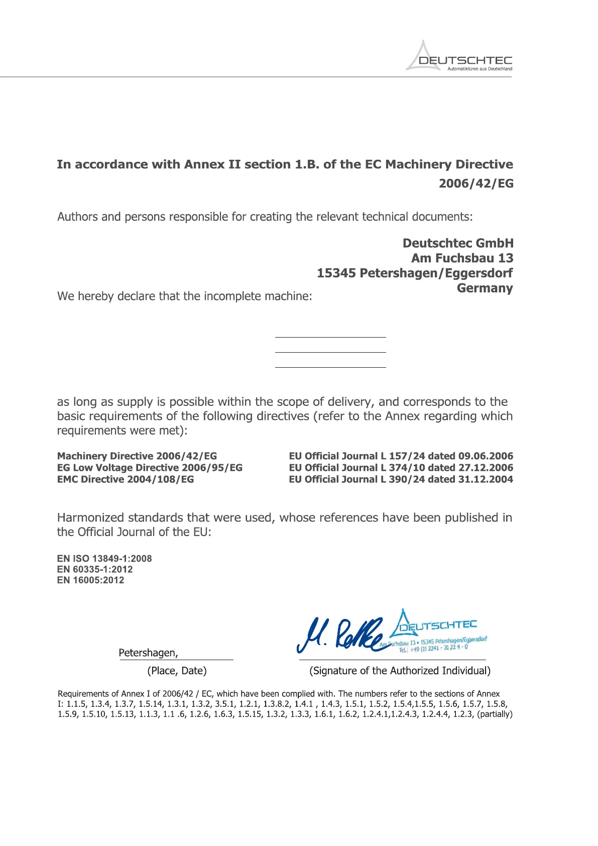 DEUTSCHTEC PRIMEDRIVE - Declaration of Incorporation