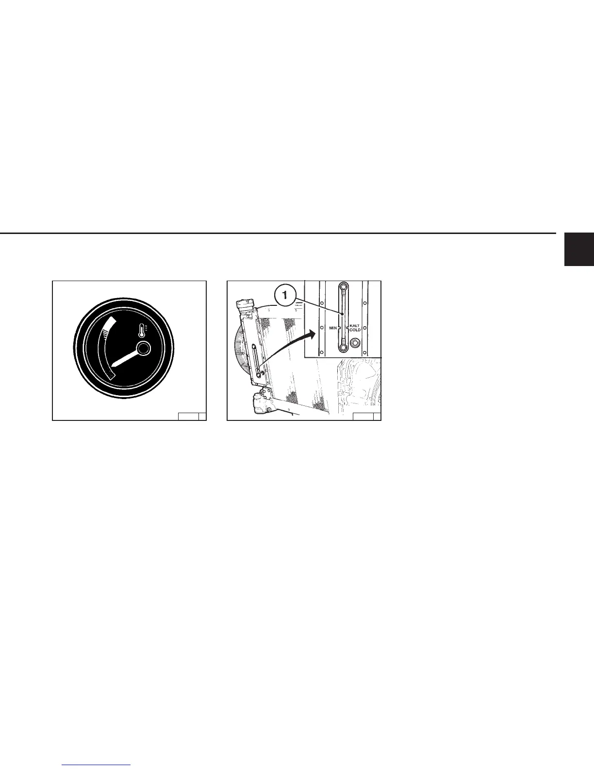 ● When the engine is cold, coolant level 1 should