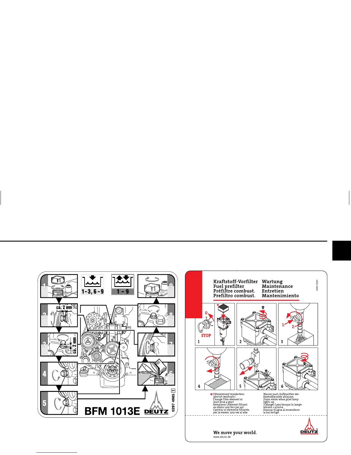 The maintenance chart shown here is supplied as self-adhesive label with each engine. It should be affixed where it can be seen clearly on