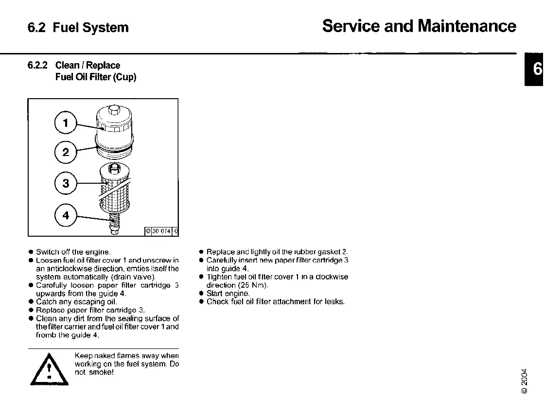 • Loosen fuel oil filter cover 1and unscrew