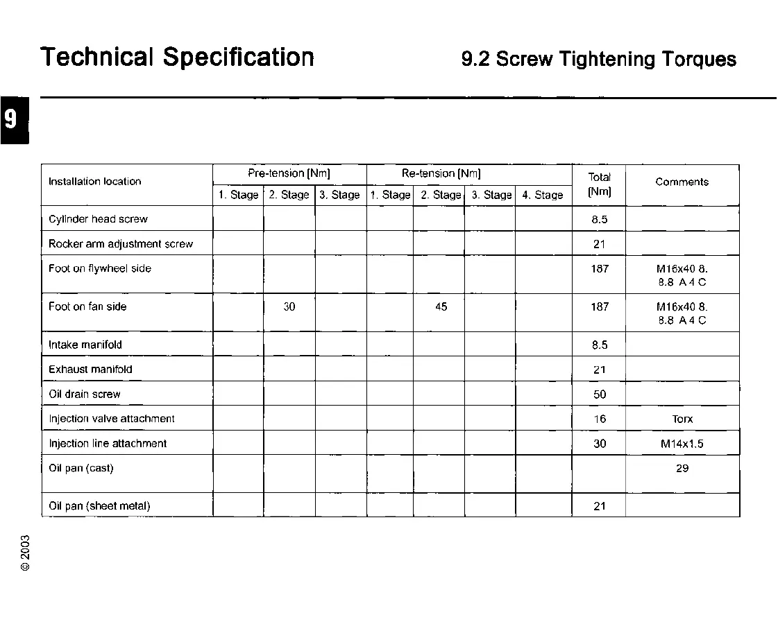Deutz 2012 - 9.2 Screw Tightening Torques