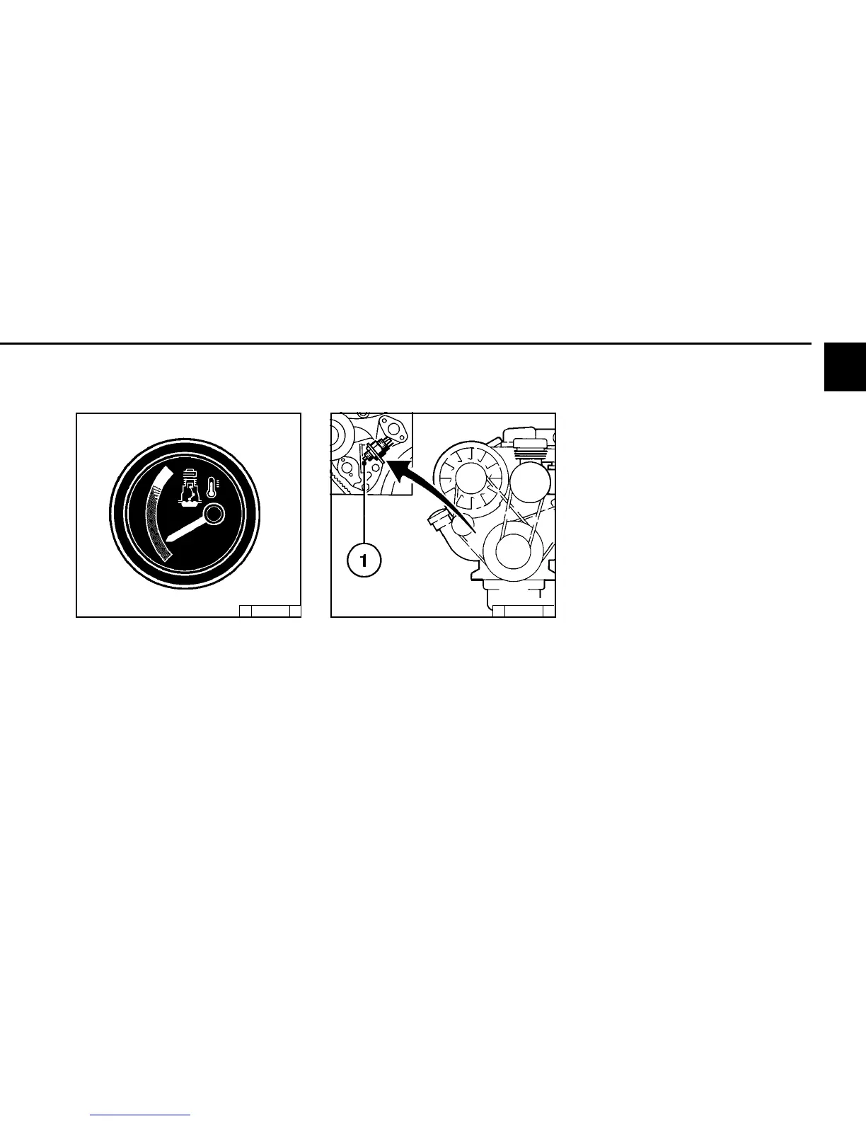 ● The engine temperature gauge pointer