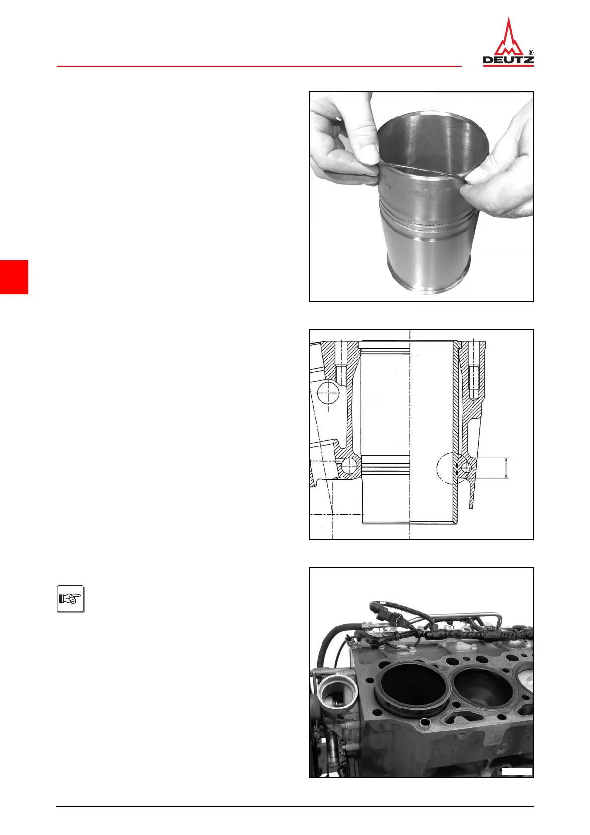 ● Insert the cylinder liner in the crankcase.