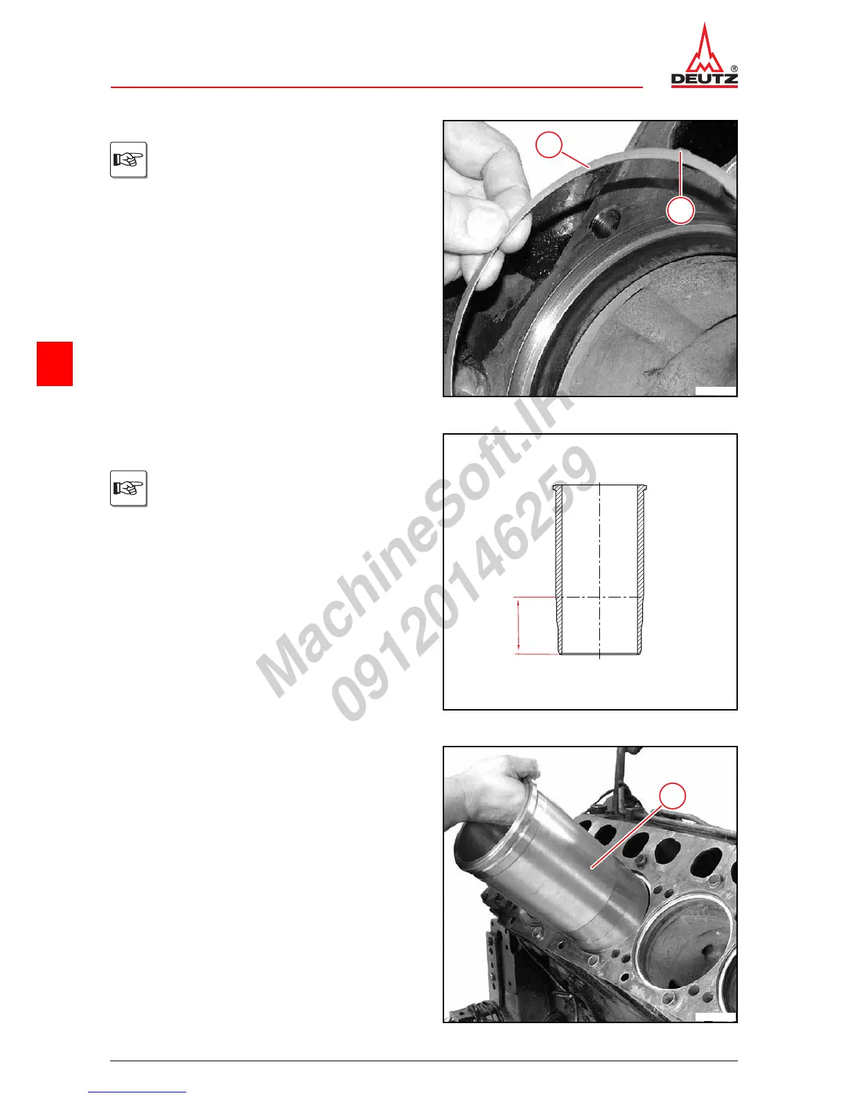 z Insert the cylinder liner (1) in the crankcase.