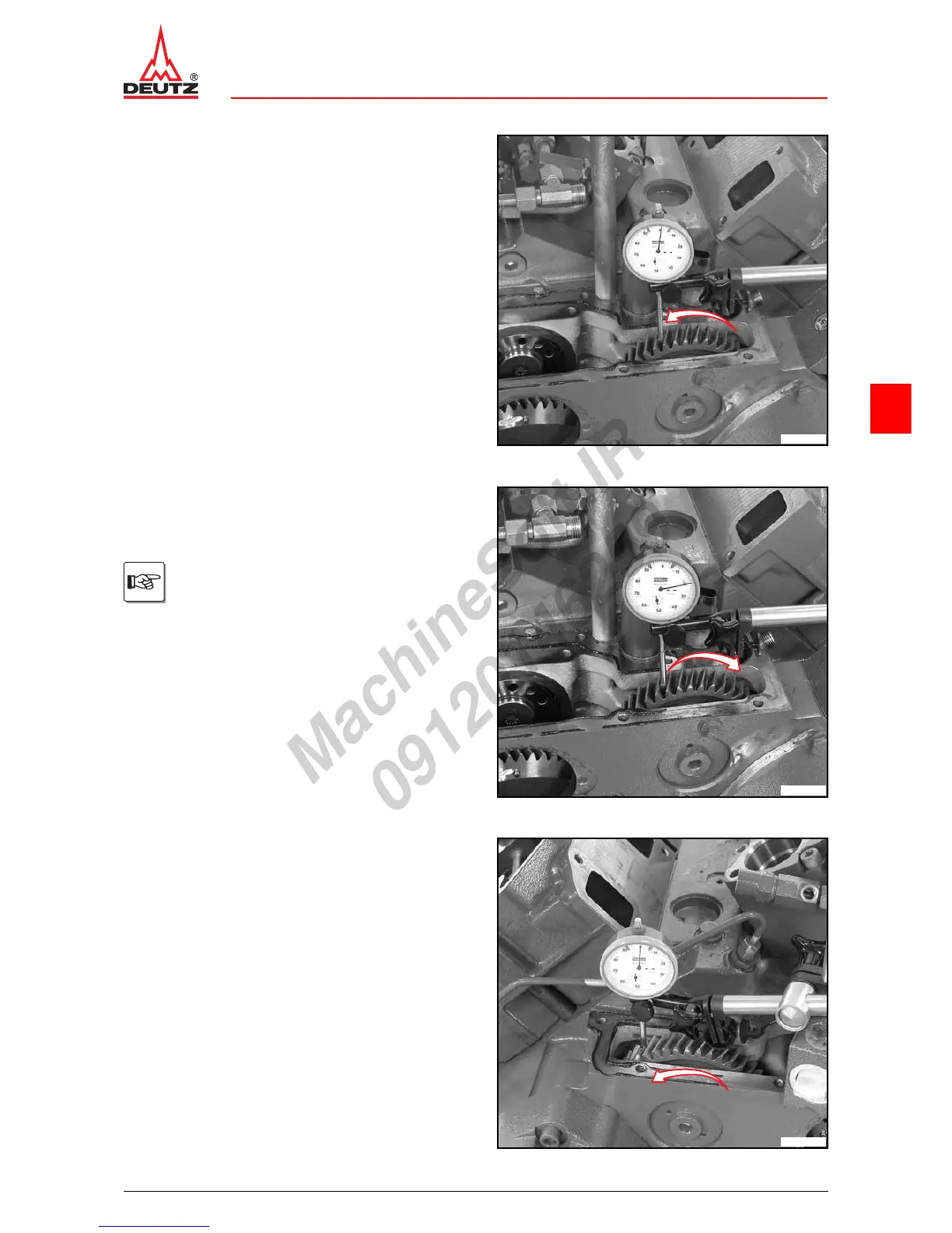 z Turn idler gear in direction of arrow until it stops.