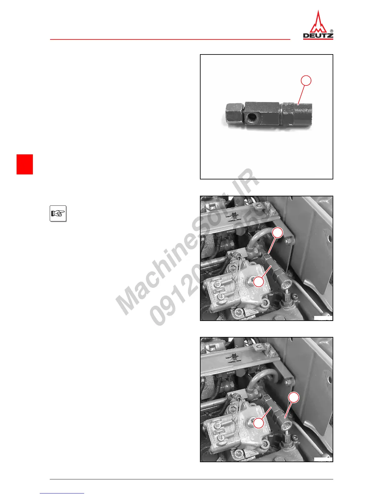 z Tighten overflow valve (1) with open wrench.