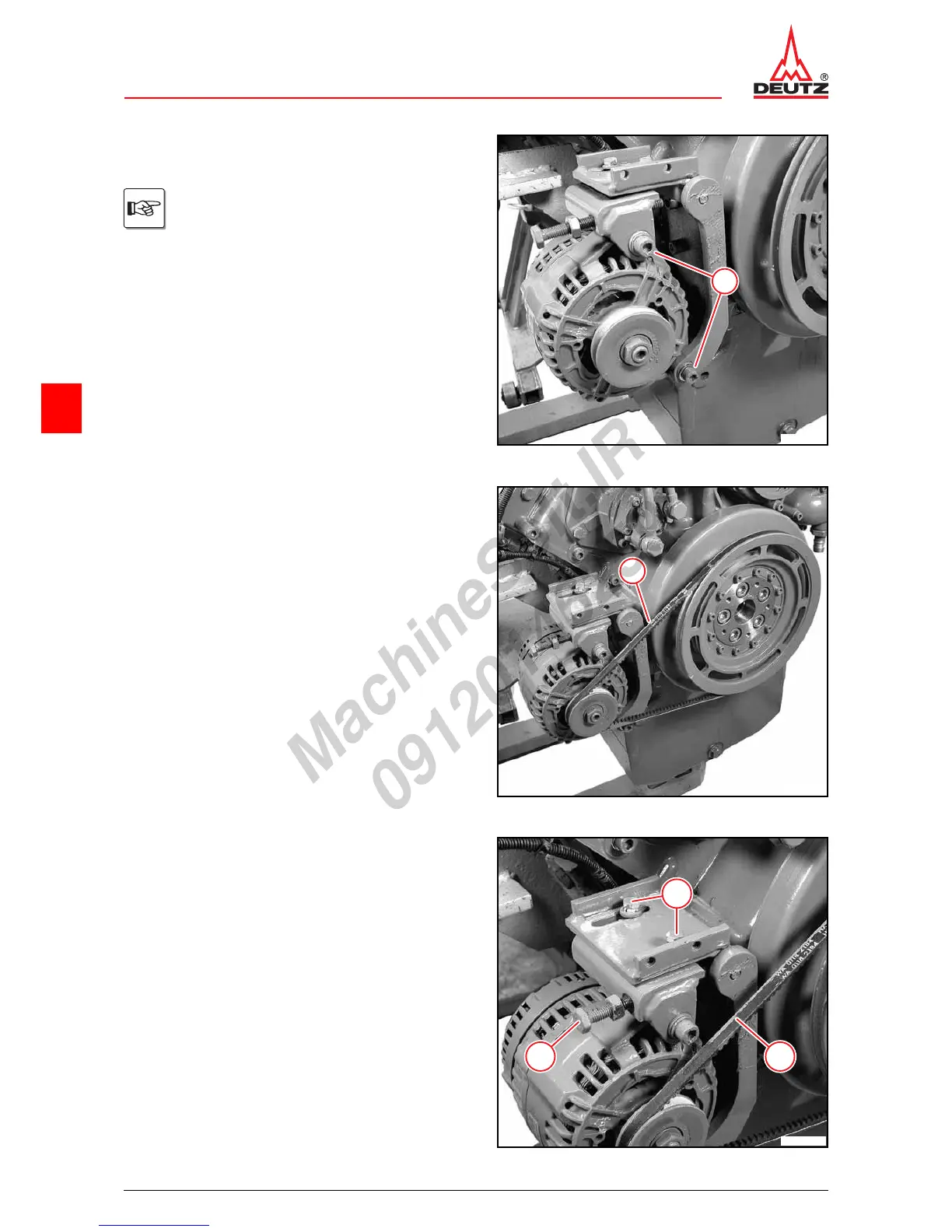 z Tighten V-belt (1) by turning the clamping screw (2).