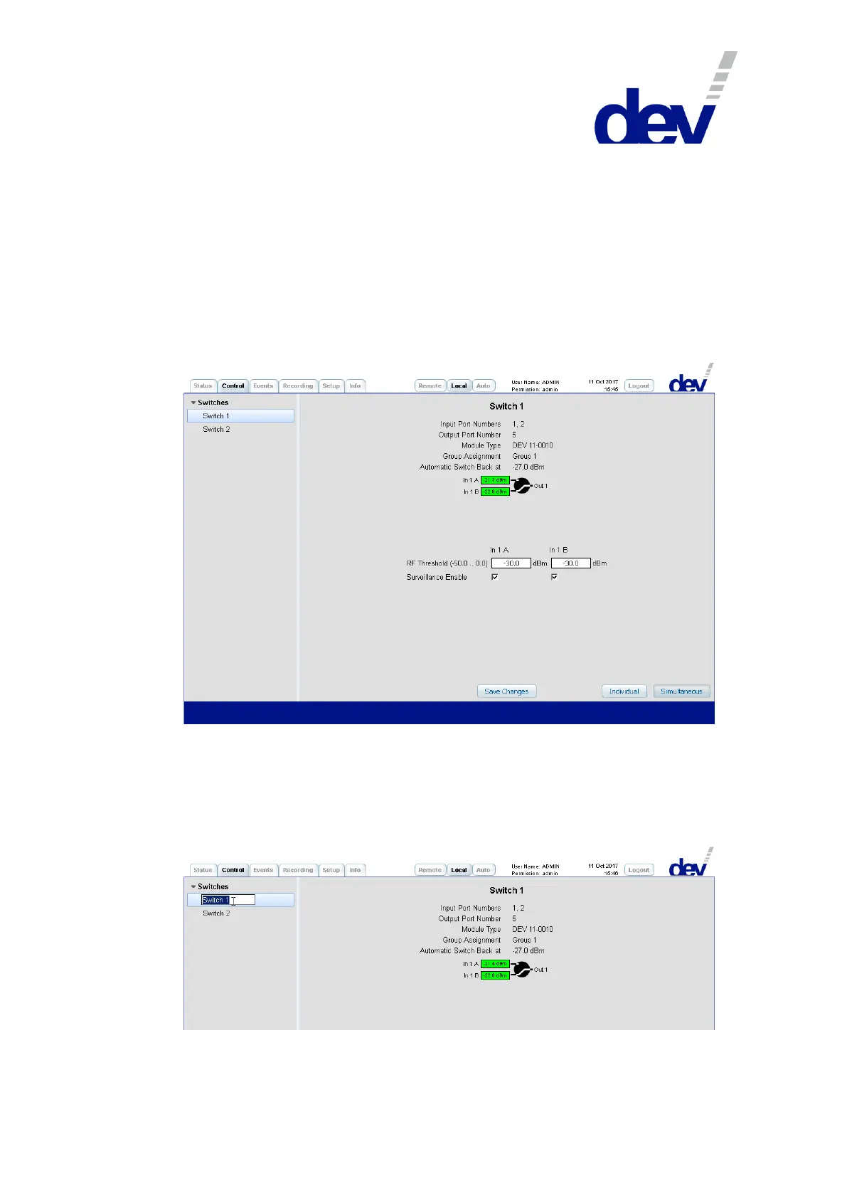 The name of each entry ("Switch X") is the descriptive designator, which can be edited