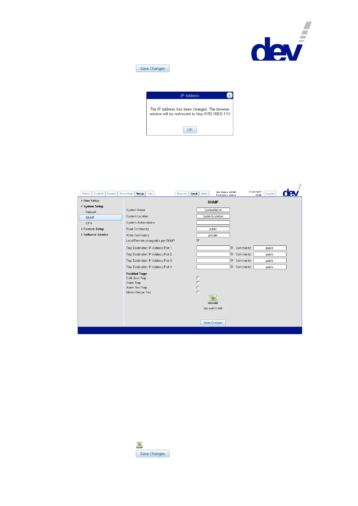 Additionally, up to four Trap Destination IP Addresses can be defined via the IP ad-