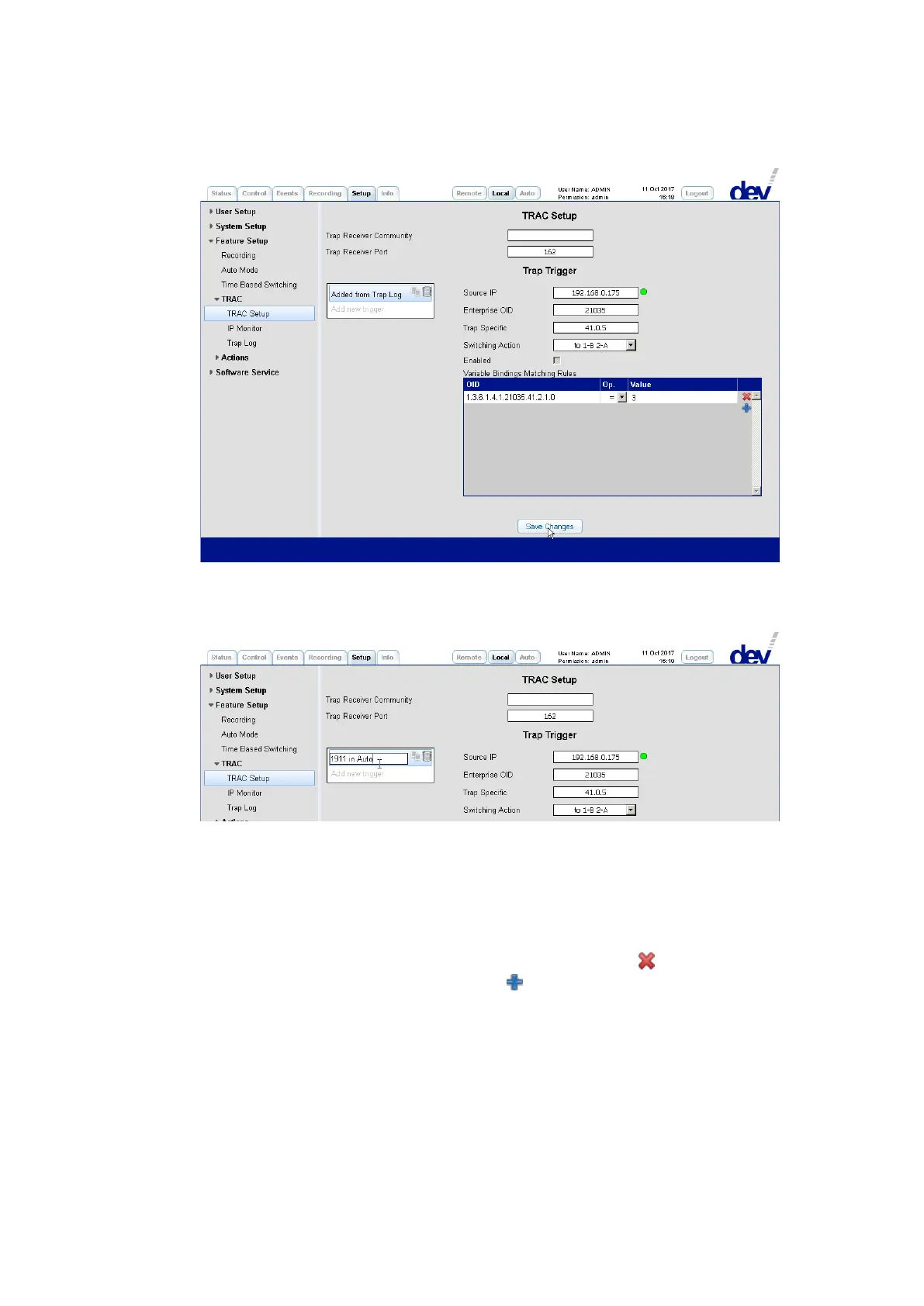 should have been defined already) and the trap trigger needs to be enabled via the