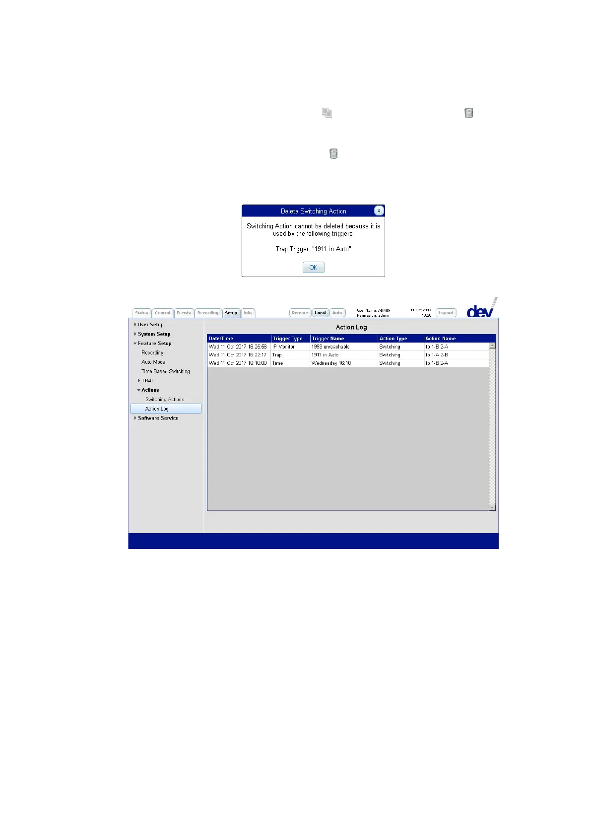 entry. A window pops up for confirmation. Note that a Switching Action cannot