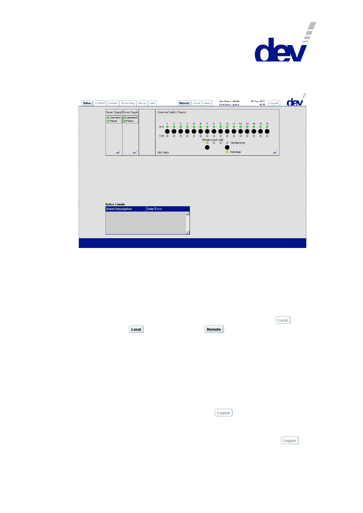 "Control", "Events", "Recording" (only for a DEV 1953 with installed sensing switch