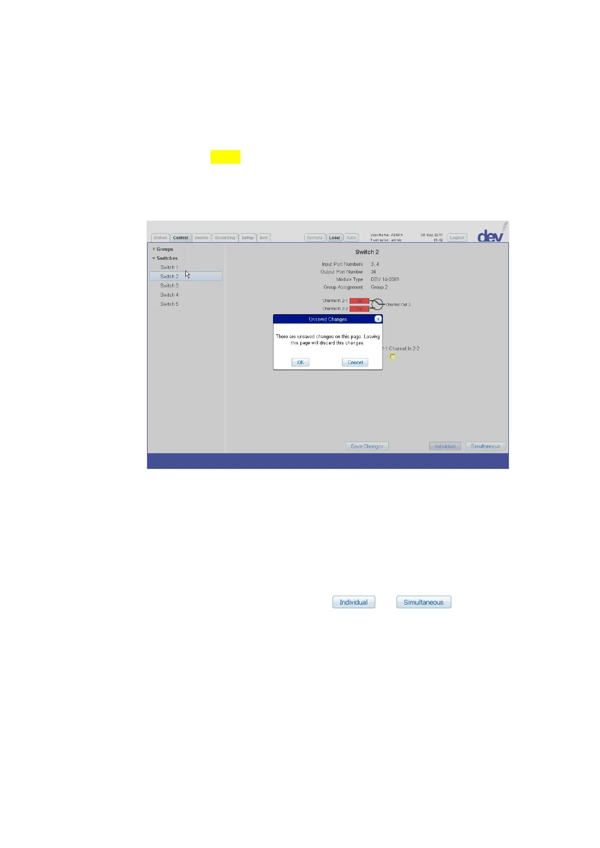 Switching and the change of settings within the Control Tab of the Web Inter-