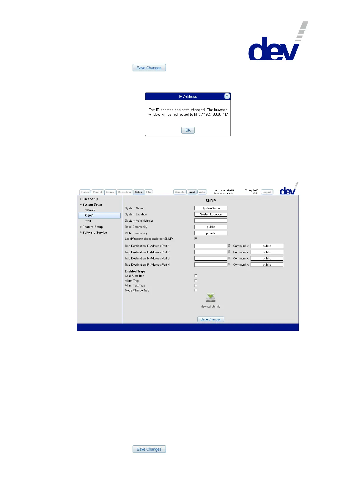 Additionally, up to four Trap Destination IP Addresses can be defined via the IP ad-