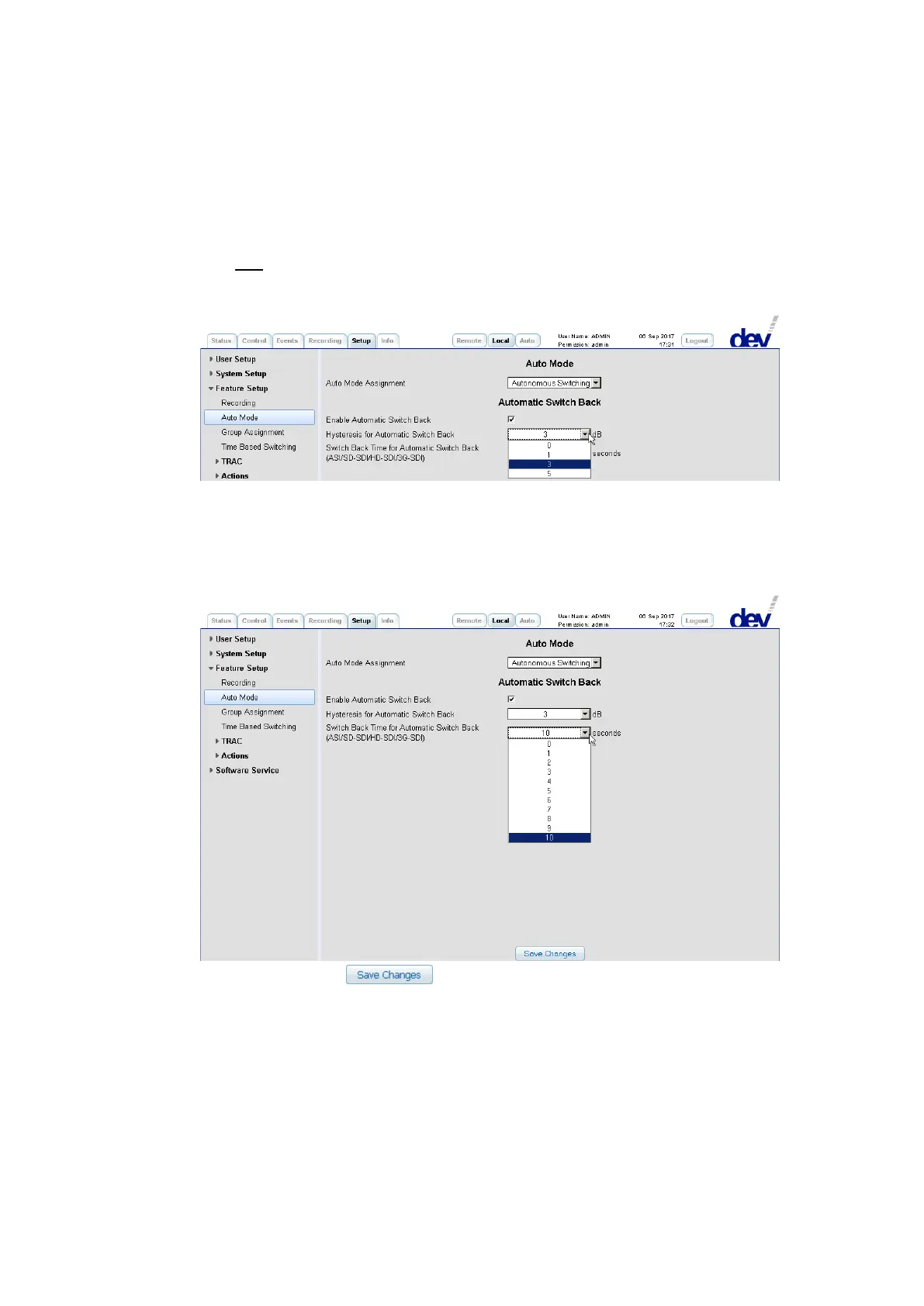seconds) can be selected via the drop down list labeled "Switch Back Time for
