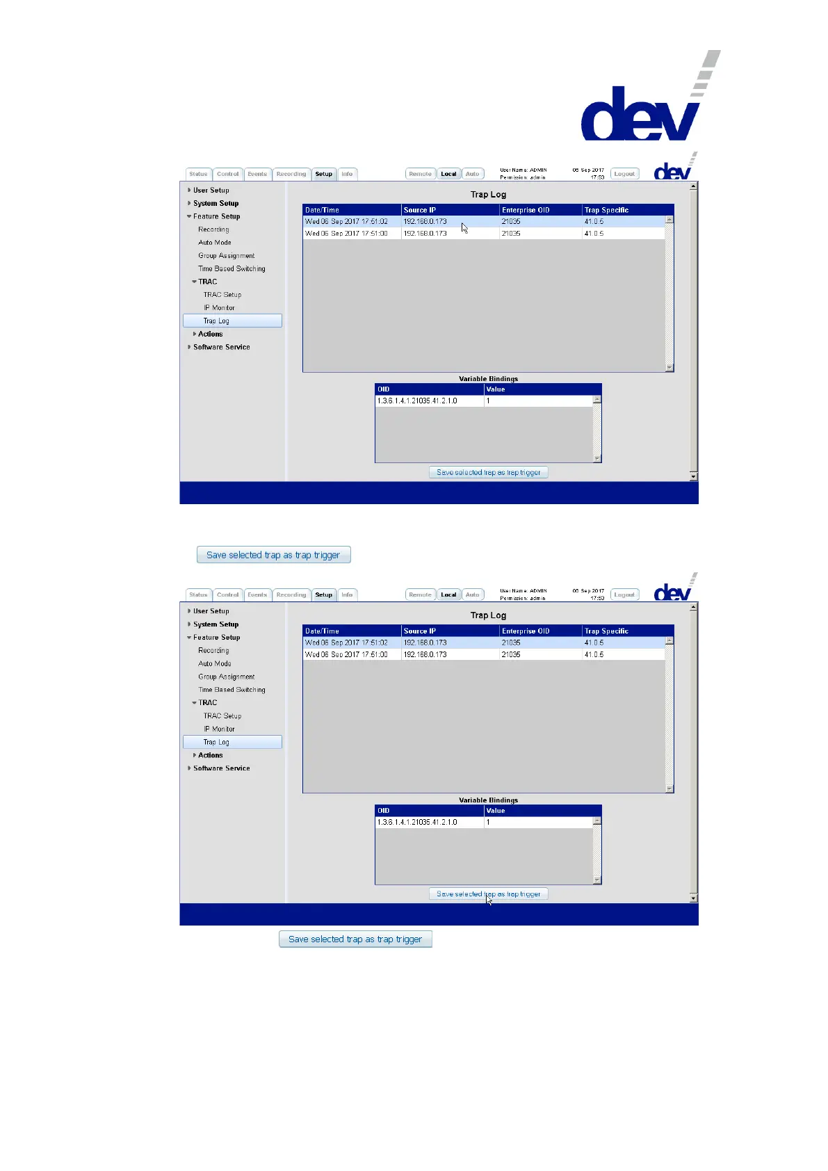 TRAC Setup entry comprising a new entry in the Trap Trigger section named