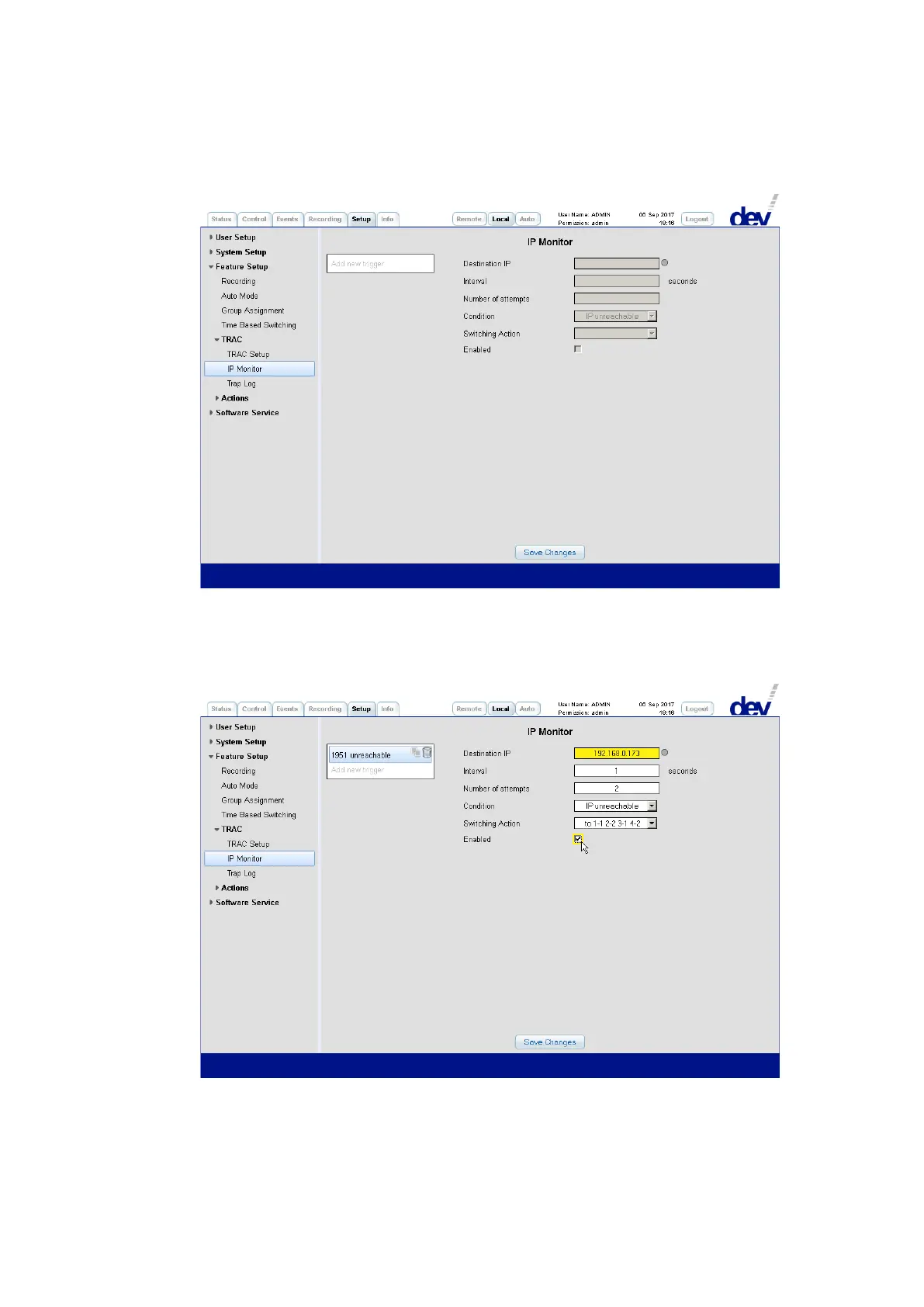 The IP Monitoring entry can be used for the definition of triggers in order to switch