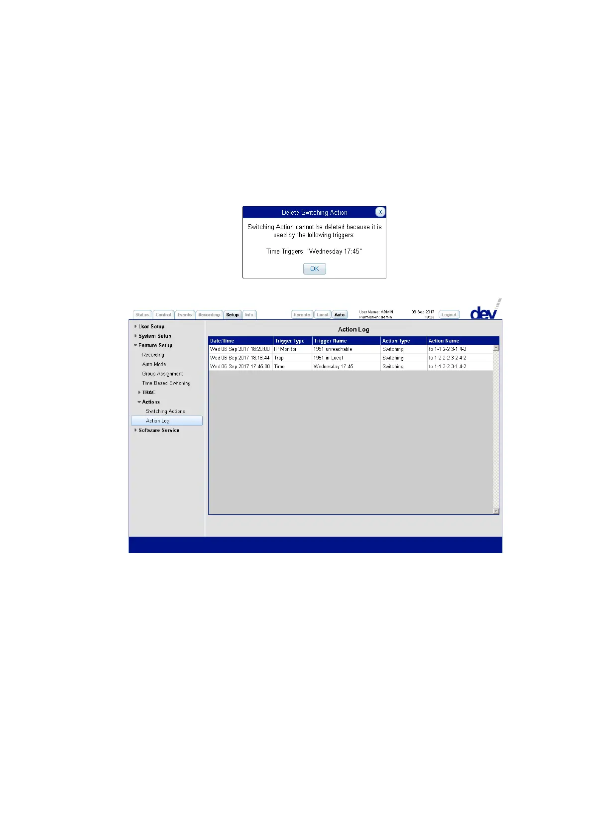 The Action Log captures the Switching Actions performed by the device in Auto