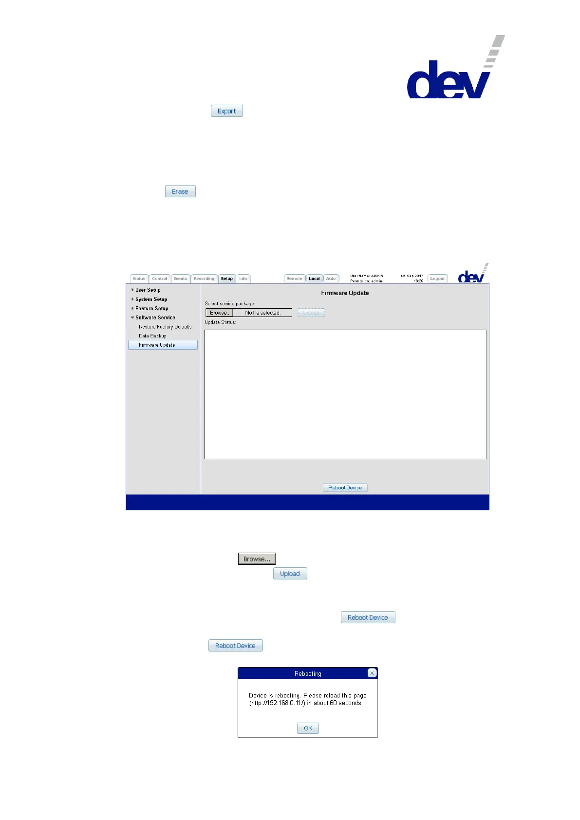The Firmware Update entry provides means to update the device firmware,