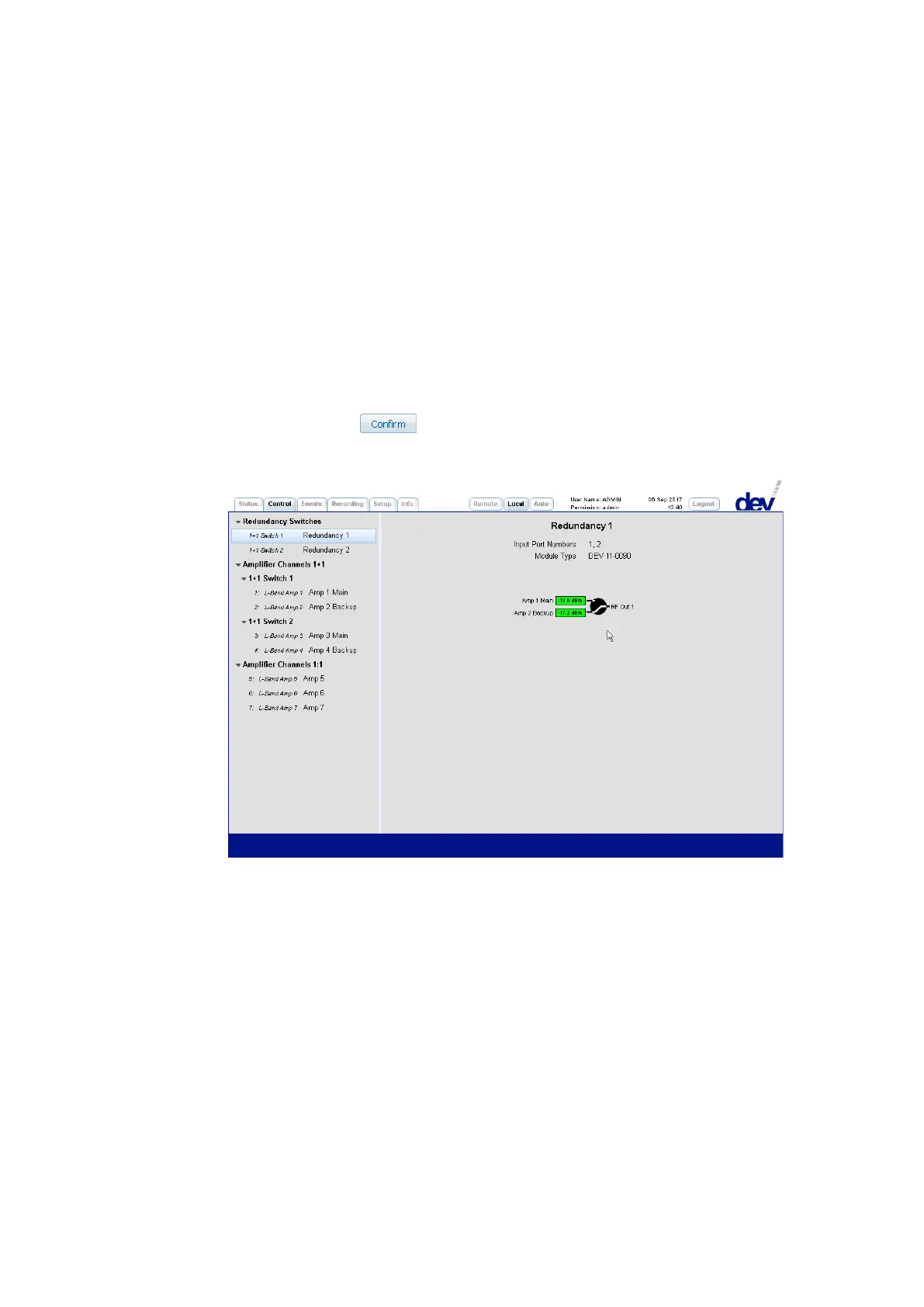 channel (here: "Amp 1 Main") and of the backup channel (here: "Amp 2 Backup") on