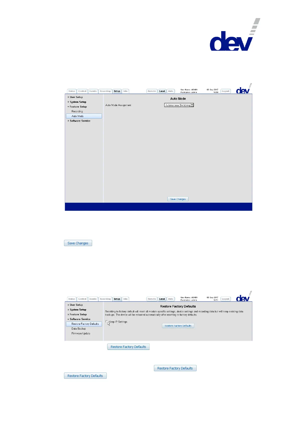 for users with "admin" permission to the Restore Factory Defaults entry, to the