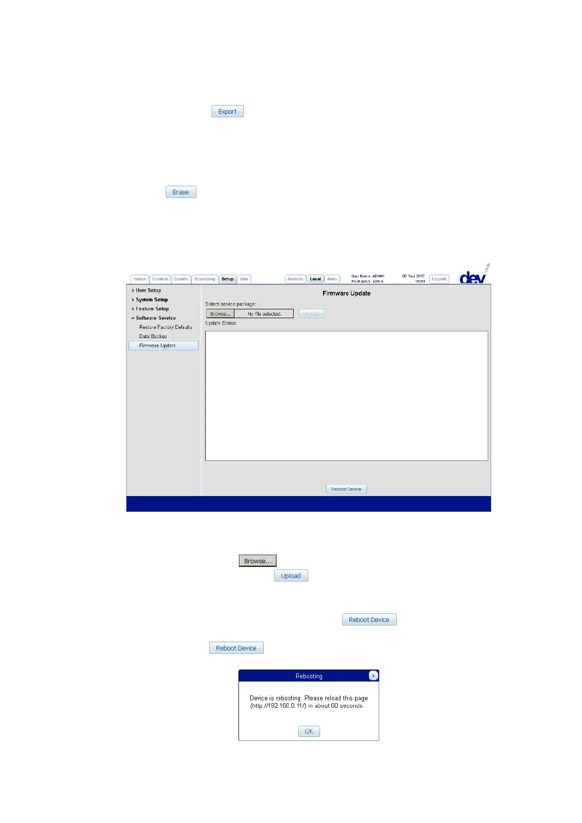 The Firmware Update entry provides means to update the device firmware,