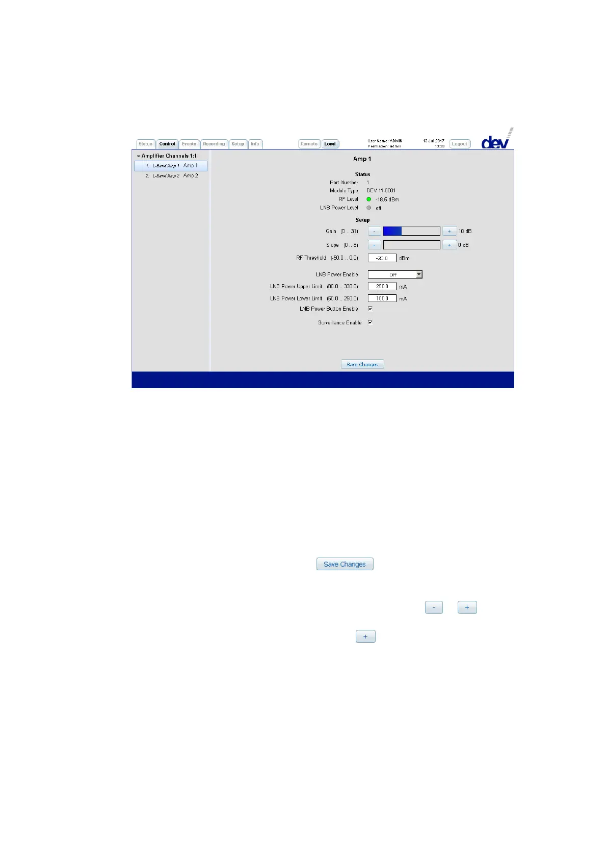 (in [dBm]) are shown. Finally, since the amplifiers provide LNB power with