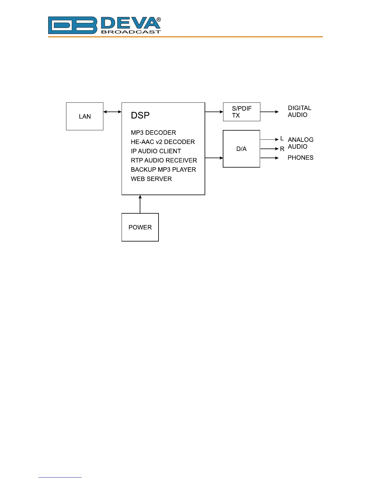 A simplied block diagram of DB91-RX IP Audio Encoder is shown below: