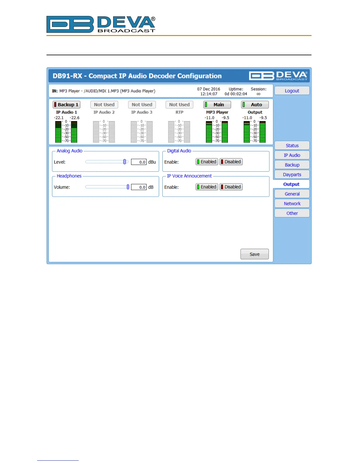 Analog Audio – set the level of the Analog Audio output (in dBu).