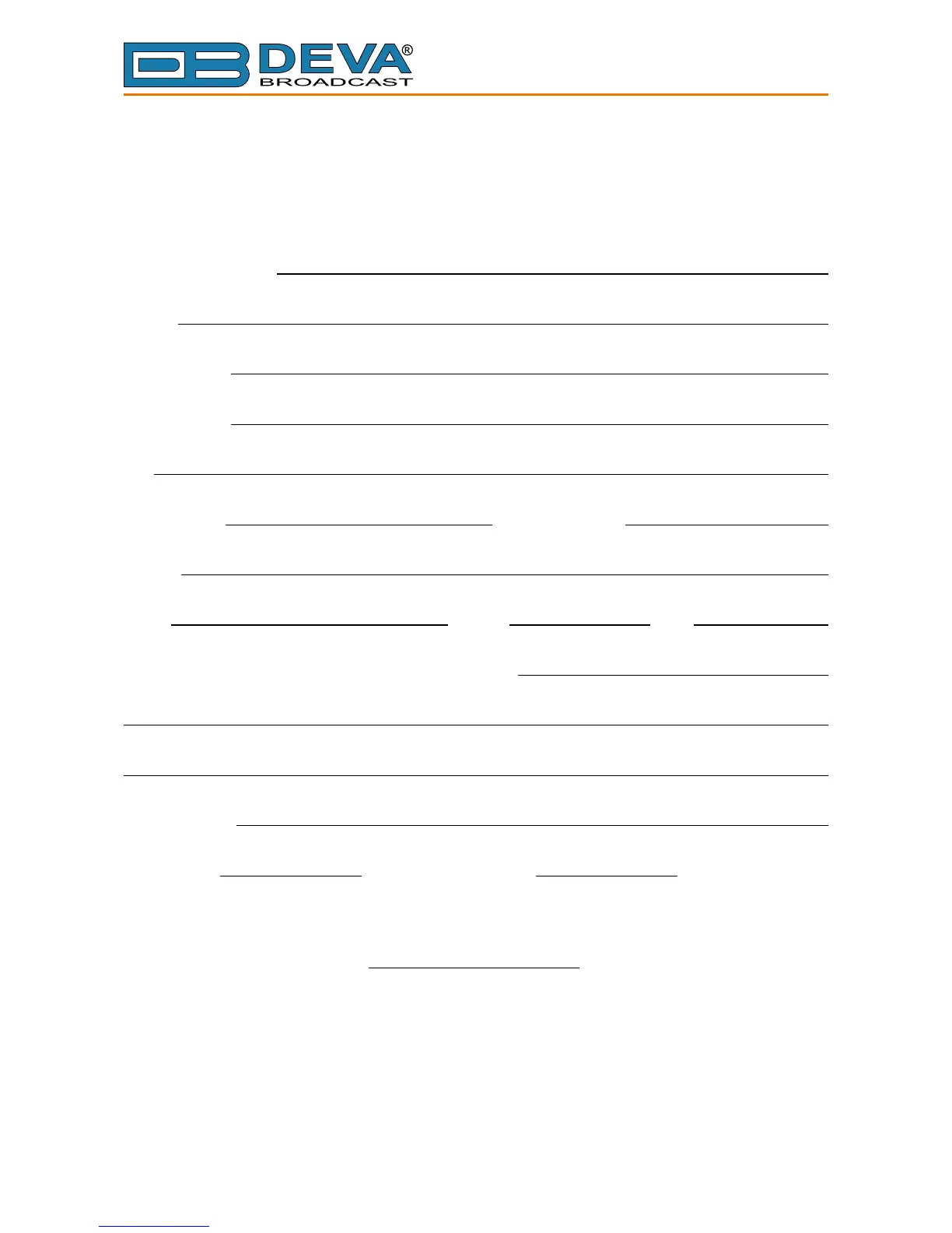 *Signing this warranty registration form you are stating that all the information provided to DEVA Broadcast Ltd. are truth and correct.