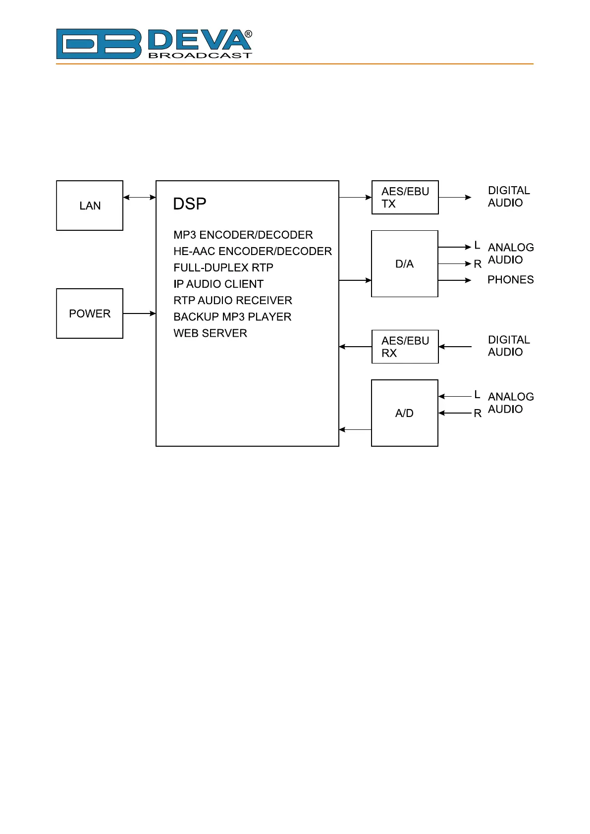 A simplied block diagram of DB910 IP Audio Encoder is shown below: