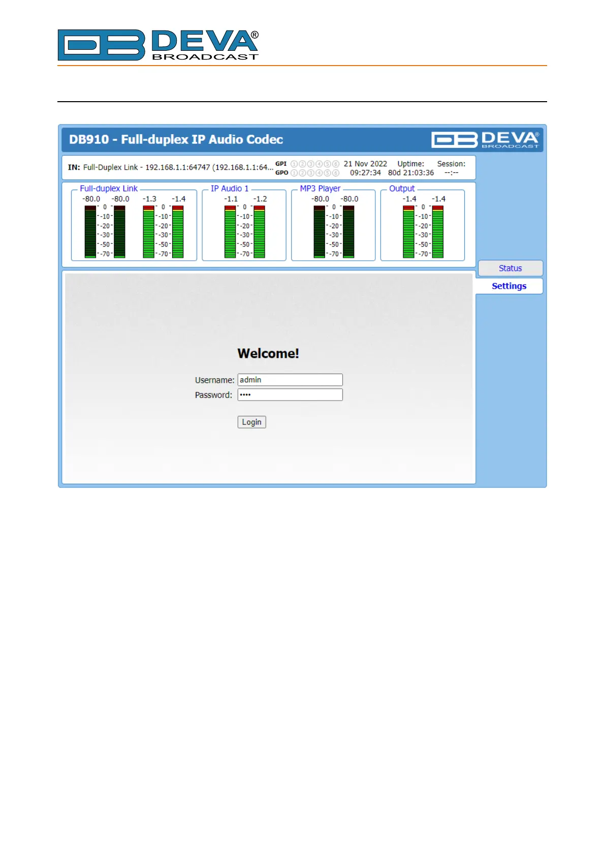 DB910 provides you with a protected access to the device settings. To make the necessary