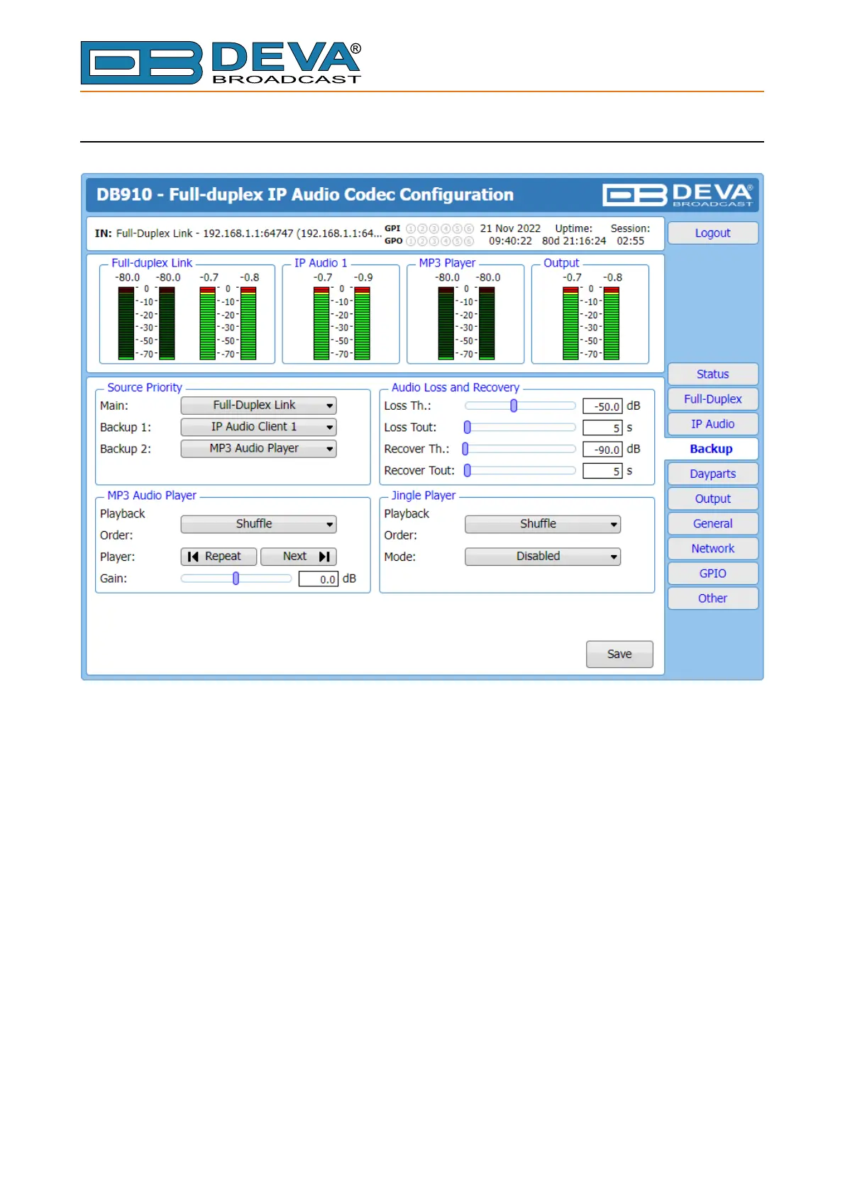 Through this screen are applied all needed settings to the alternative sources. The backup