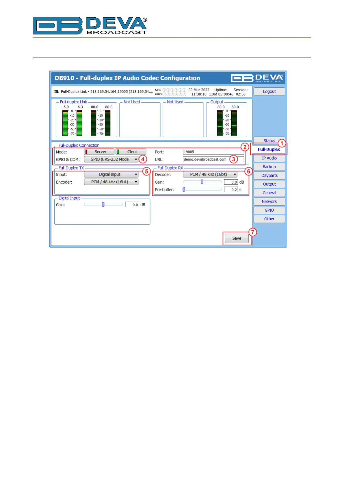 must be set as Encoder in Server DB910’s Full-Duplex TX section;