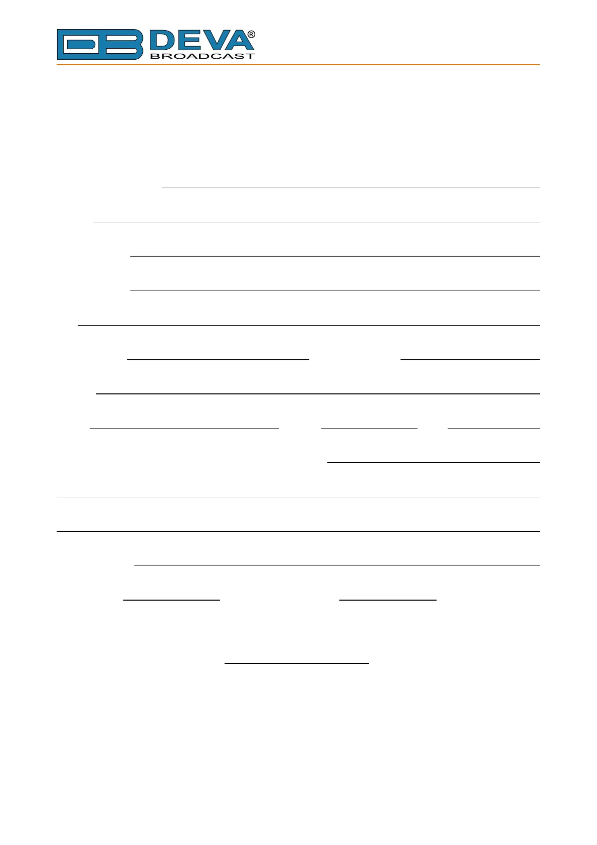 *Signing this warranty registration form you are stating that all the information provided to DEVA Broadcast Ltd. are truth and correct.