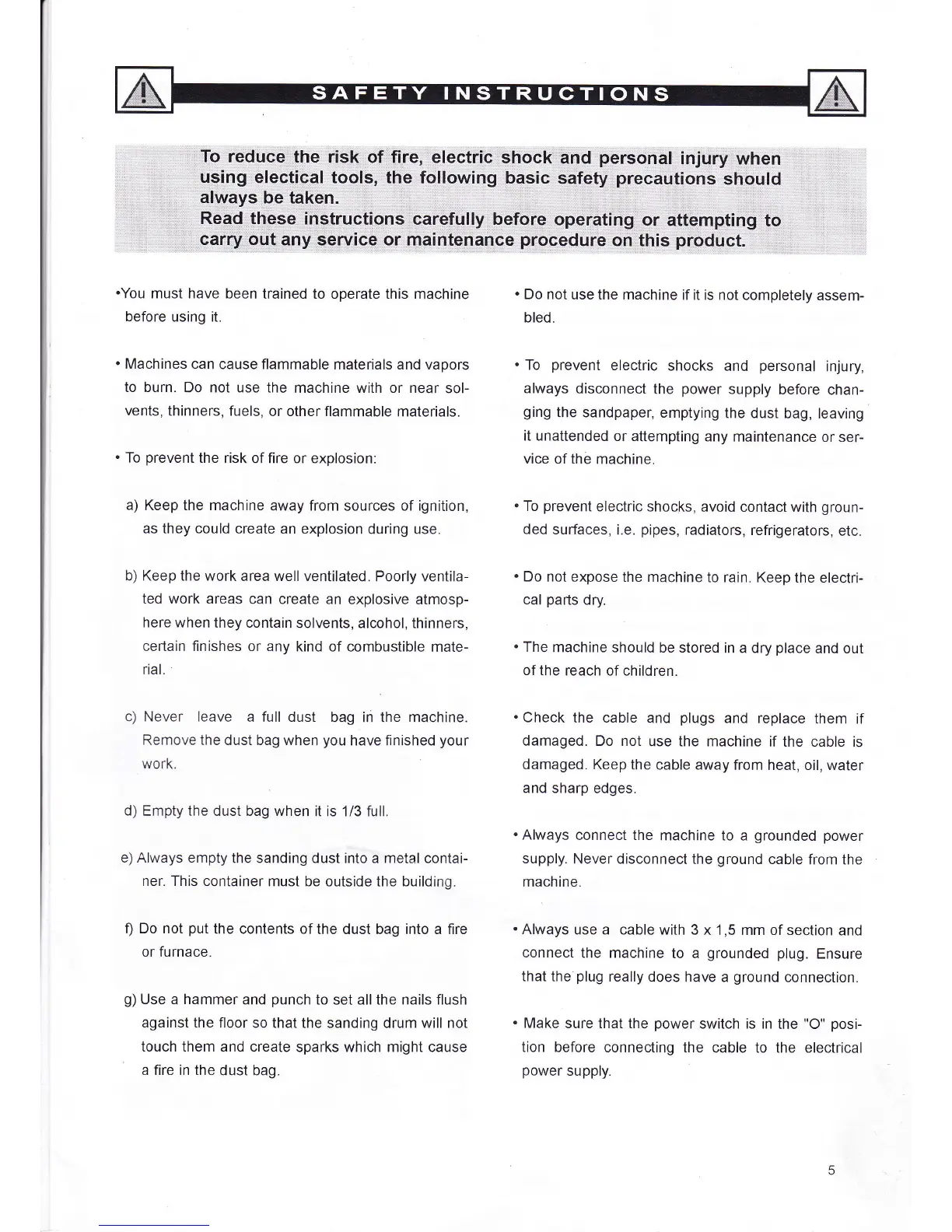 floor so that the sanding drum will not