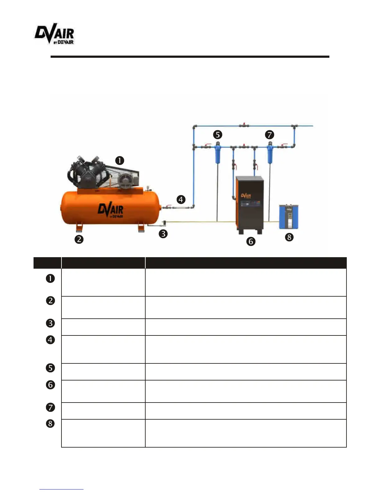 Air Compressor: is the heart of the compressed air system. Ensure it is sized for the