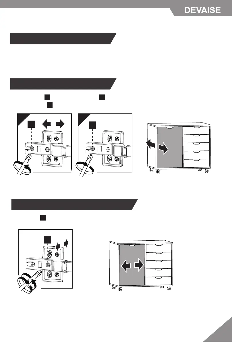 Loosen screw ( Do not loose screw to the end), push hinge arm forwards or backwards,