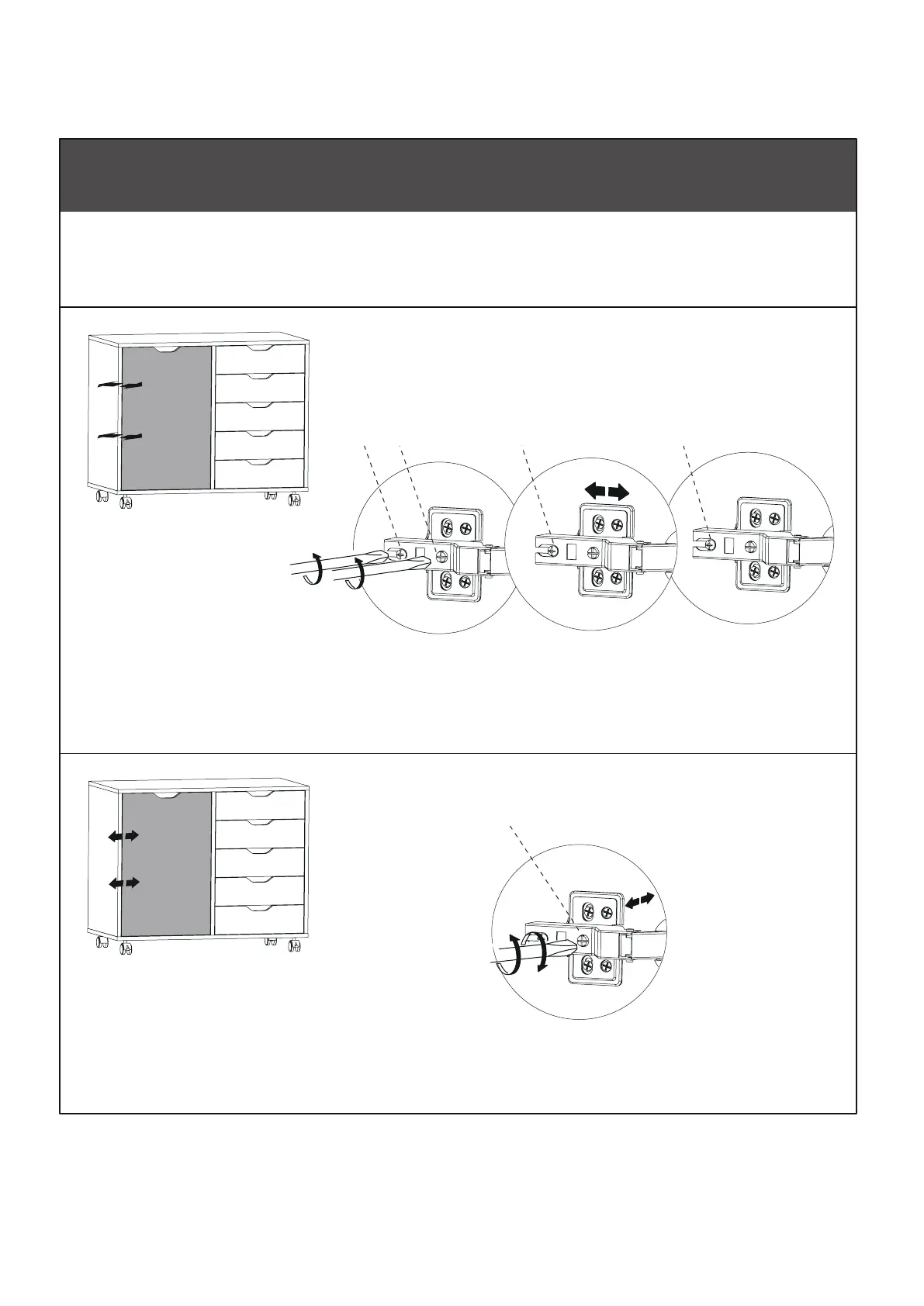 DEVAISE S-ASNG010 - Cabinet Door Hinge Adjustment Guide; Adjusting Cabinet Door Depth; Adjusting Cabinet Door Side Clearance