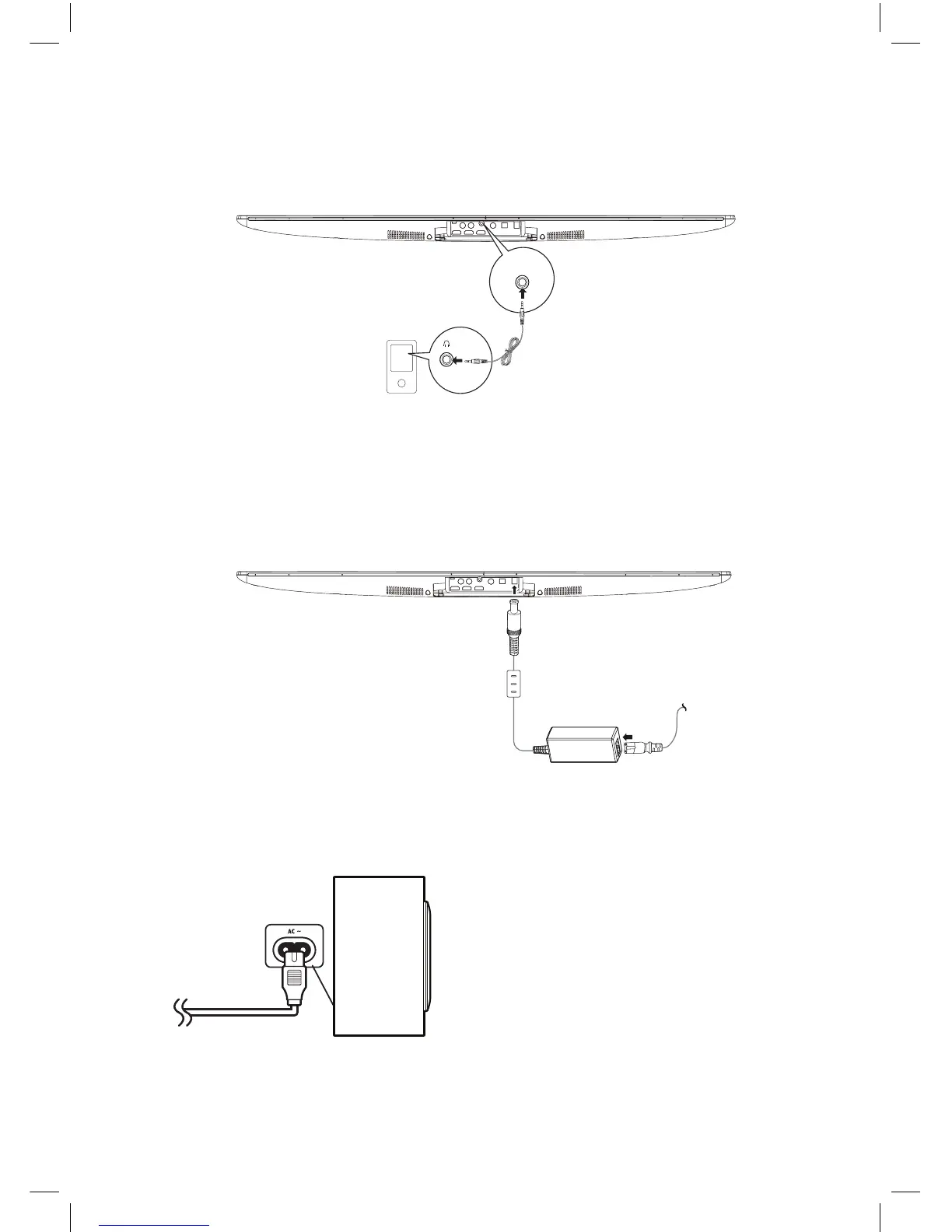 Connect a 3.5mm stereo audio cable (not supplied) to the AUX IN jack on this unit and the phone