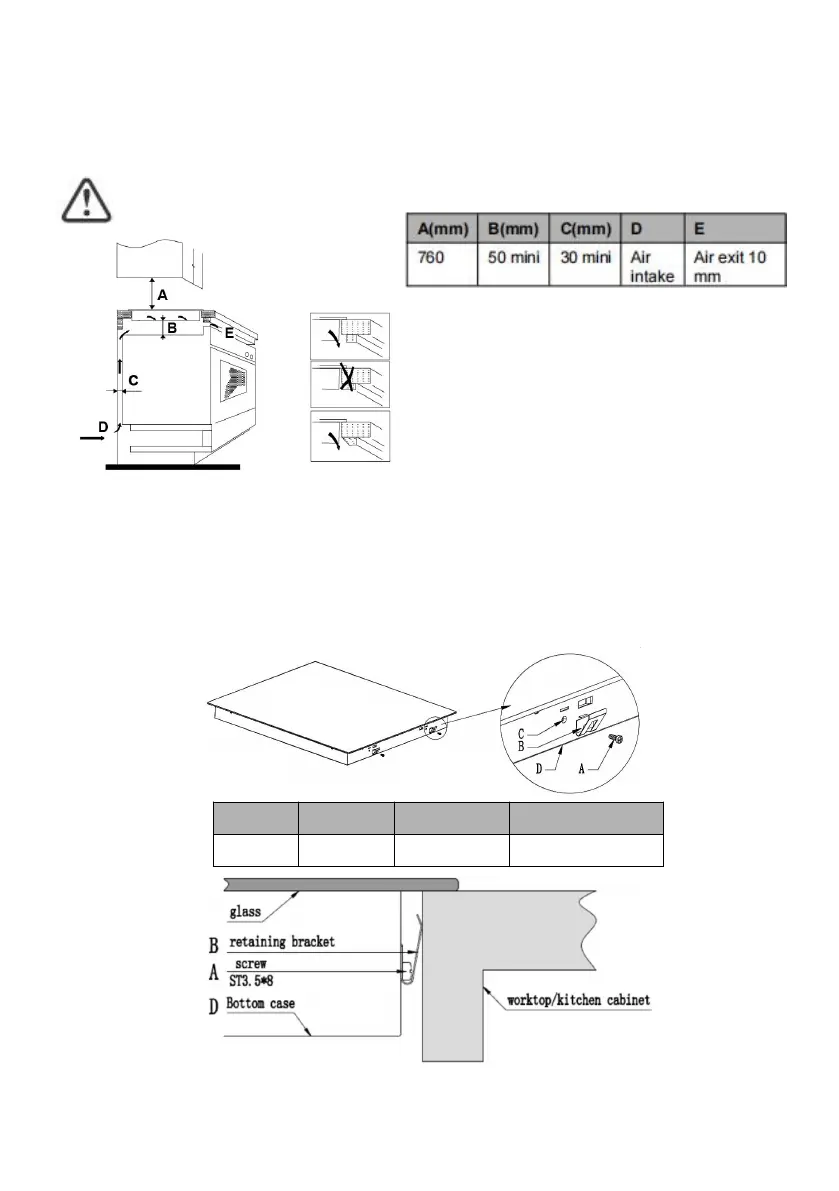 2. Fix the hob on the work surface by screw four brackets on the bottom of hob