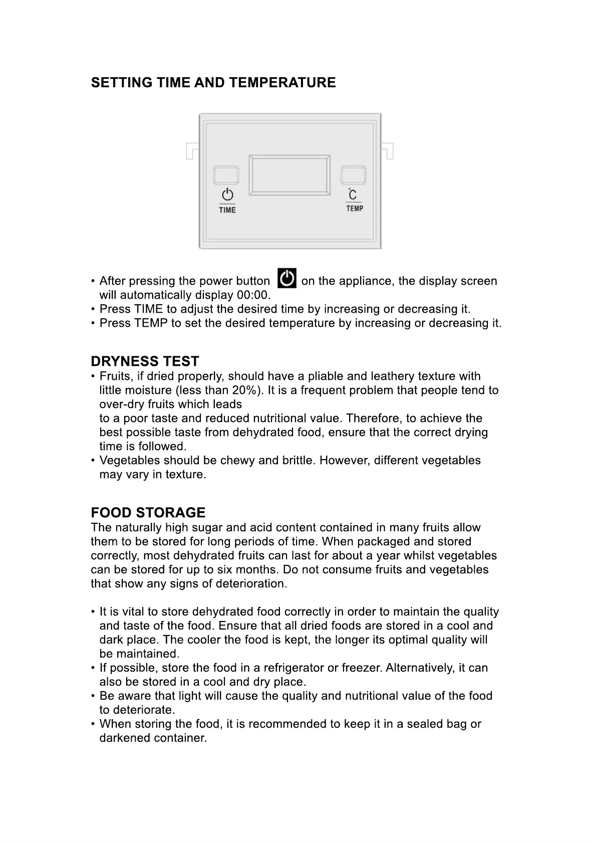 best possible taste from dehydrated food, ensure that the correct drying