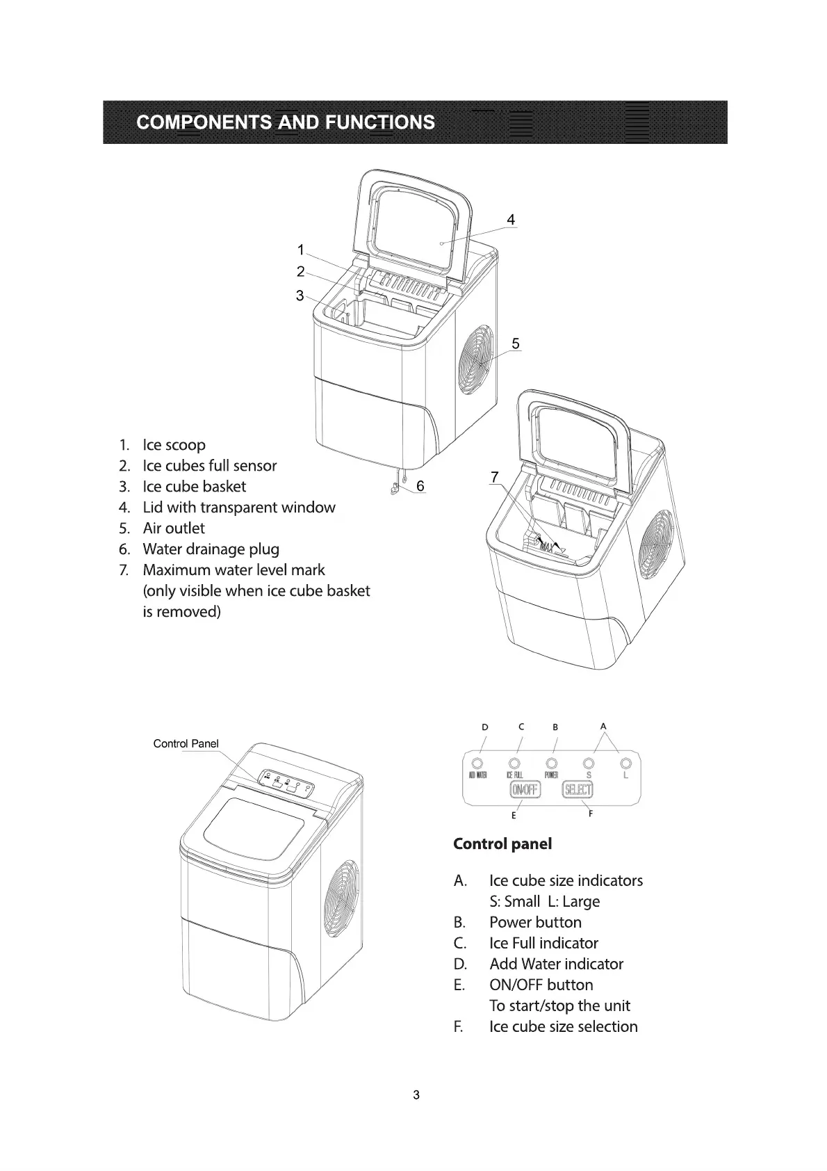 (only visible when ice cube basket