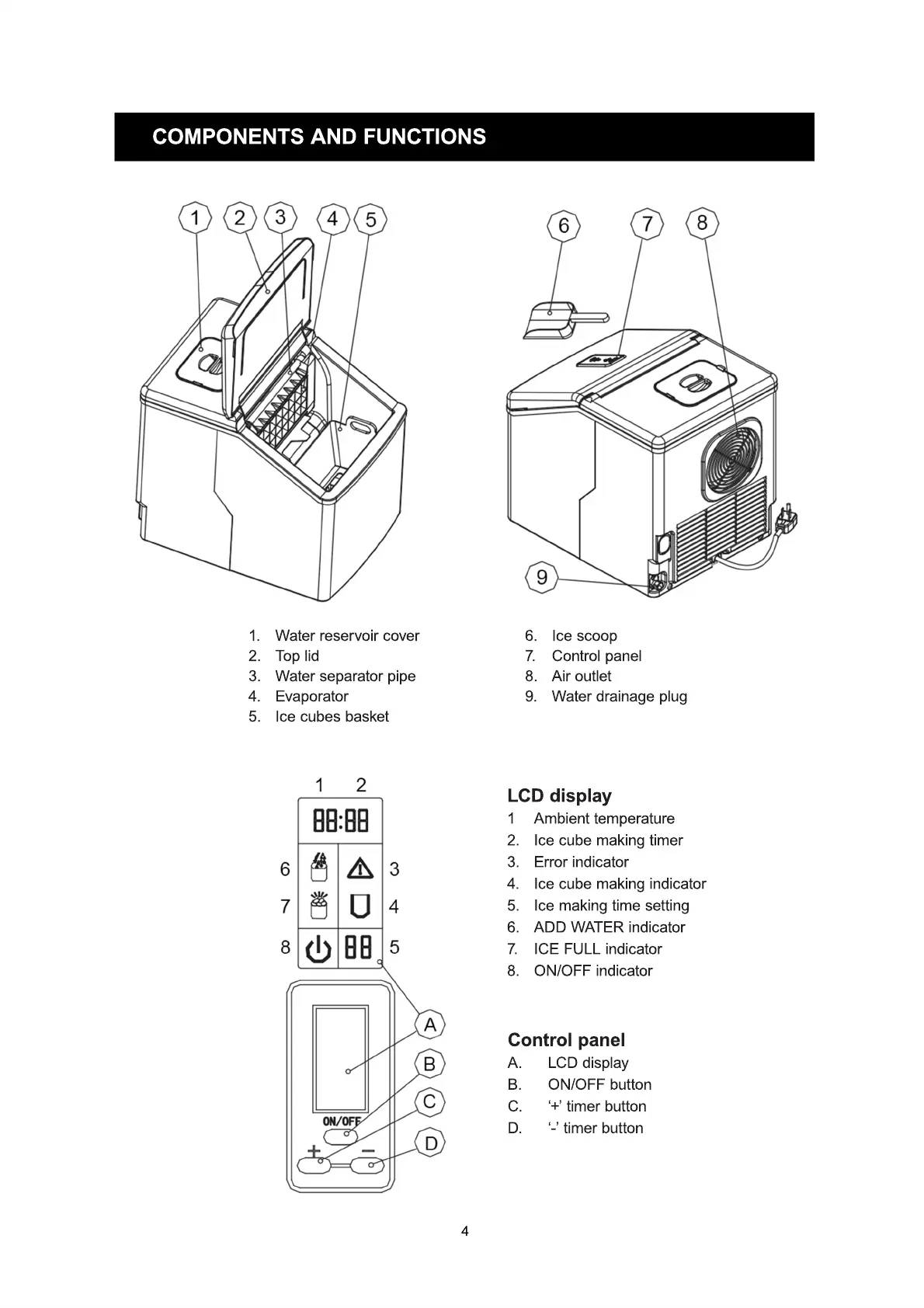 DEVANTI IM-ZB-18F-SS - Components and Functions; Appliance Components; LCD Display Indicators; Control Panel Overview