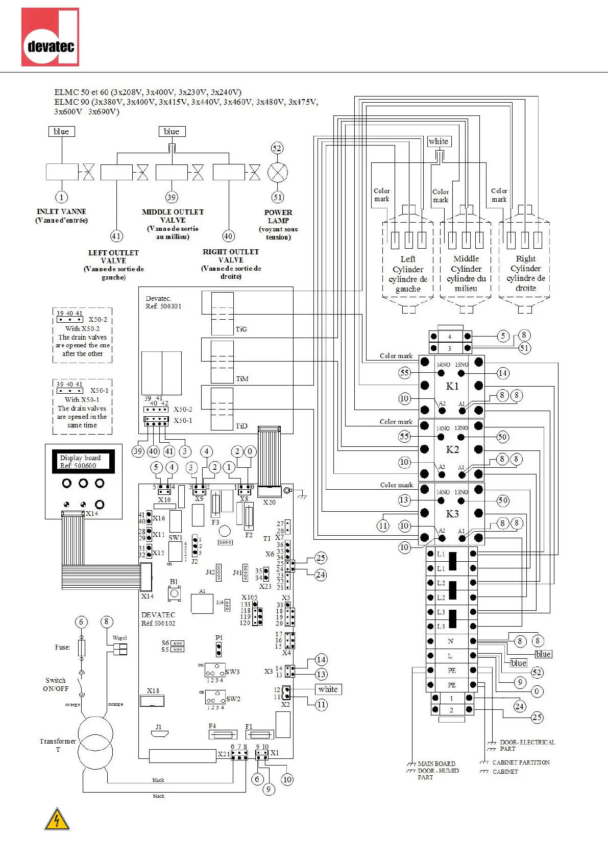 Devatec ELECTROVAP MC2 - Installation - Step 6: 3-Phase Wiring (ELMC 50, 60, 90); ELMC 50;60 and ELMC 90 3-Phase Wiring Diagrams