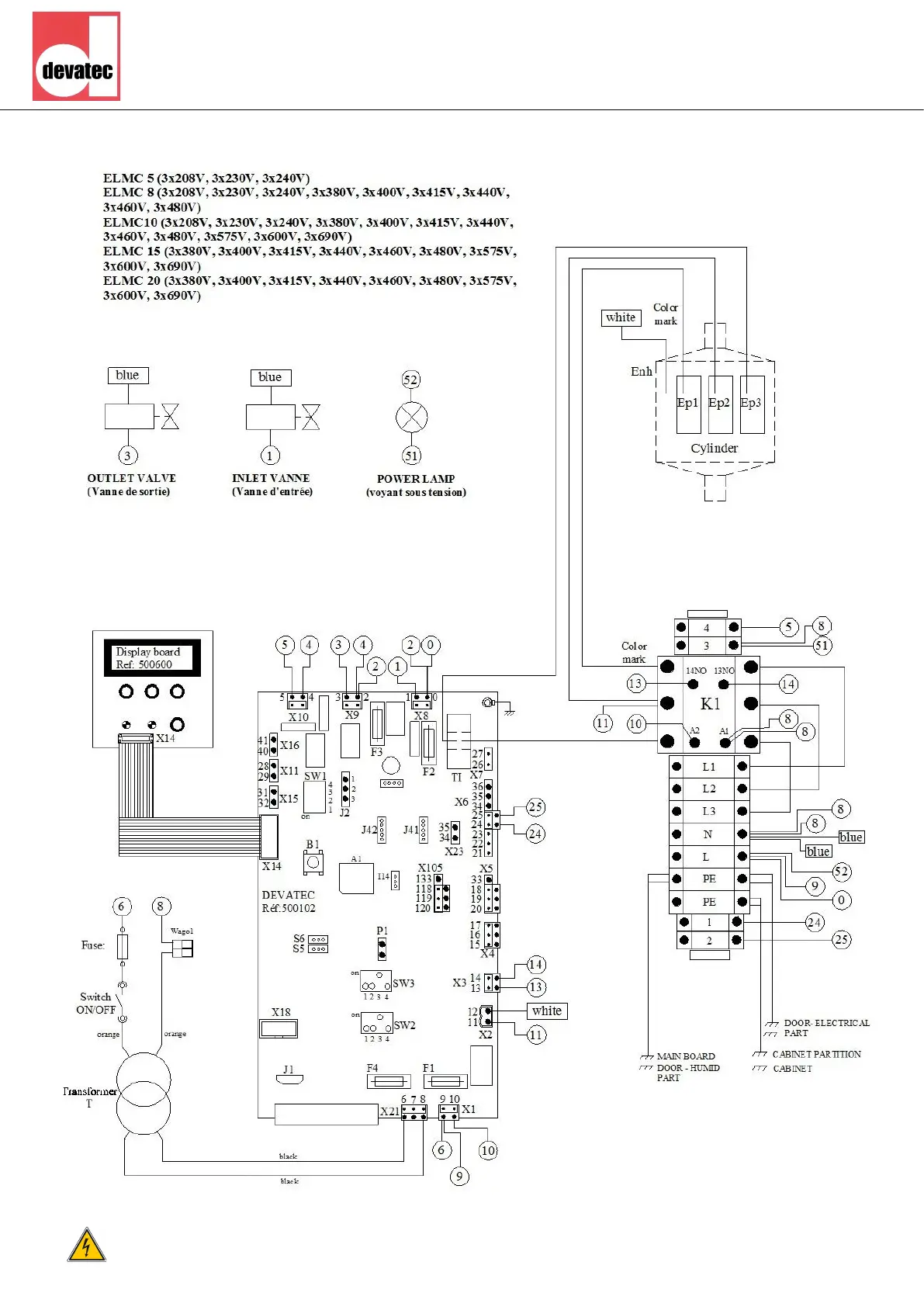Devatec ELECTROVAP MC2 - Installation - Step 6: 3-Phase Wiring (ELMC 5, 8, 10, 15, 20); ELMC 5, 8, 10, 15, 20 3-Phase Wiring Diagrams