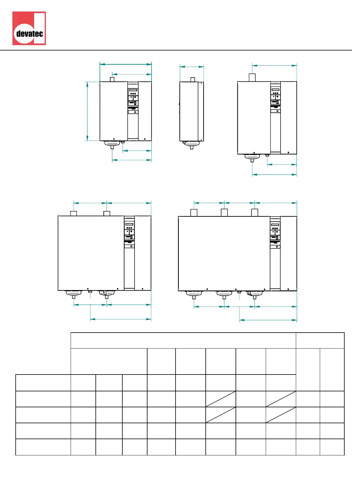 Devatec ELECTROVAP MC2 - Dimensions and Weight; Model Dimensions and Weight Specifications