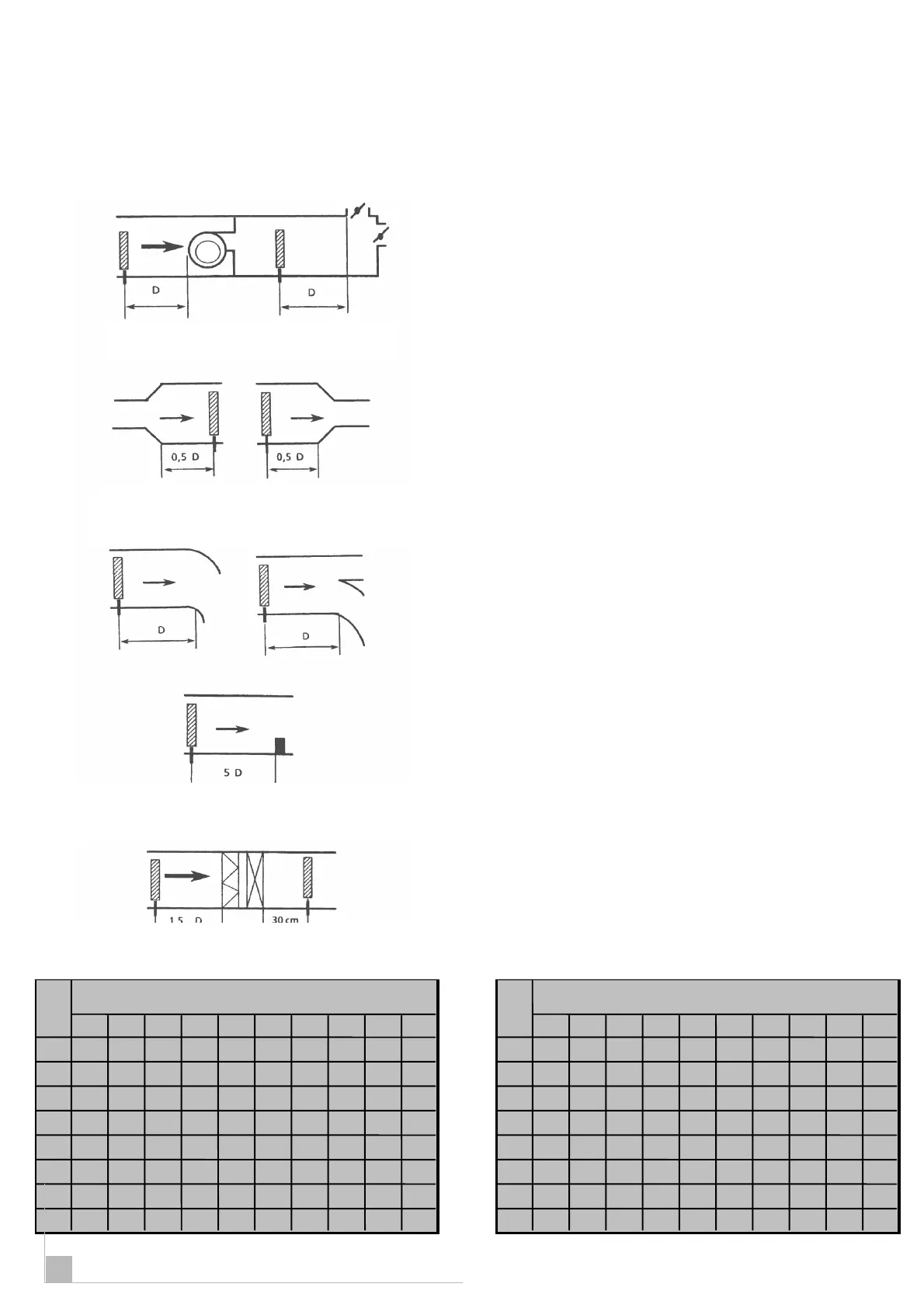 The tables show the D distance (in meter/inches) that
